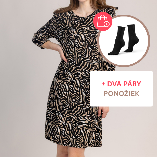 Ľahké šaty určené na chvíle relaxu. Vyrobené z príjemnej zmesi polyesteru a ďalších vlákien, ktoré zaisťujú lepšie prispôsobenie, priedušnosť a mäkký dotyk.