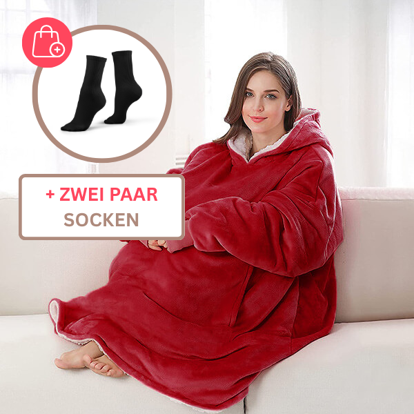 SoftHug™ ist eine flauschige Decke in Form eines Pullovers, die Sie beim Fernsehen, Lesen, in der Natur und auf Reisen kuschelig und warm hält.